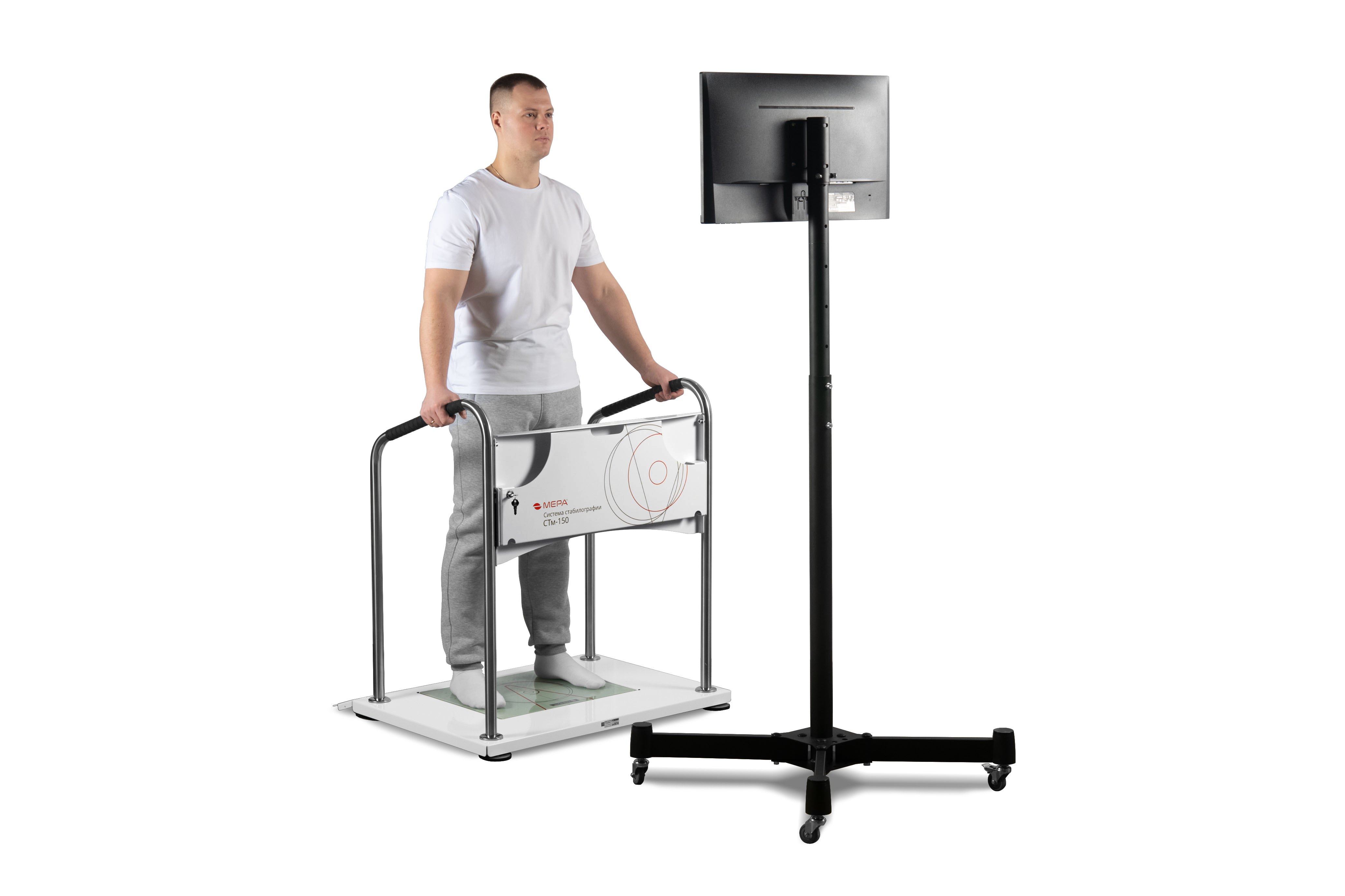 Система стабилографии с БОС весоизмерительная МЕРА-СТм-150-1 — система с одним диапазоном измерения массы и максимальной нагрузкой 150 кг, грузоприемное устройство которого выполнено в виде цельной плоской площадки из закаленного стекла или алюминиевого сплава, и предназначена для проведения стабилометрических исследований и измерений массы тела обследуемого/пациента преимущественно в положении стоя.